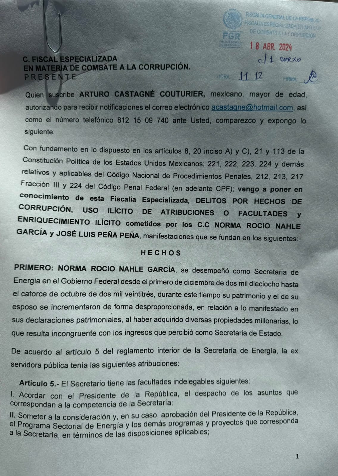 presentaron una denuncia penal ante la Fiscalía General de la República en