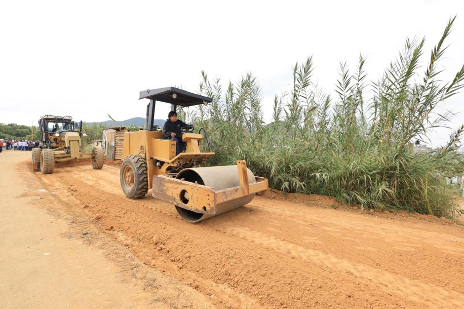 el Gobernador Salomón Jara Cruz dio el banderazo de inicio a la pavimentación