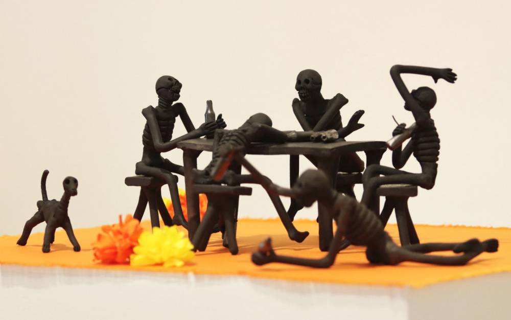 Bartolo Coyotepec, y gira en torno al binomio vida-muerte. Paseantes, plañideras, catrinas, borrachos,