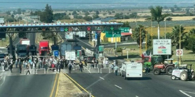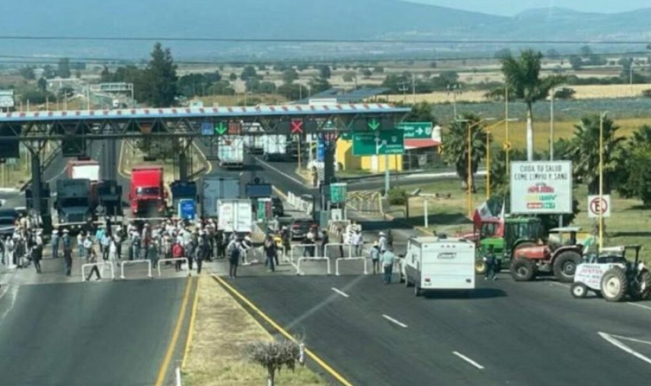 agricultores en la autopista Morelia-Zinapécuaro, en Michoacán, como parte de