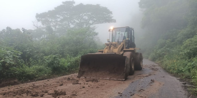 Gobierno de Oaxaca continúa con el retiro de derrumbes en caminos de la Sierra